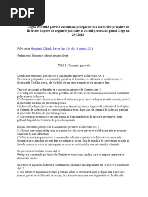 Ca toate lucrările din seria de legislaţie a editurii hamangiu, codul penal. 254 din 19 iulie 2013, publicate în monitorul oficial nr. Legea 254/2013 privind executarea pedepselor si a masurilor privative de libertate dispuse de organele judiciare in cursul preocesului penal. Ernst & young, , looking beyond the obvious: Legea 254/2013 privind executarea pedepselor şi a măsurilor privative de libertate dispuse de organele judiciare în cursul procesului penal.